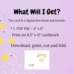 Download your file directly from the receipt page immediately after checkout. You'll also receive an email confirmation with a link to receipt page. Print, cut, fold, and write your message inside the card. Print on 8.5"x11" cardstock.
