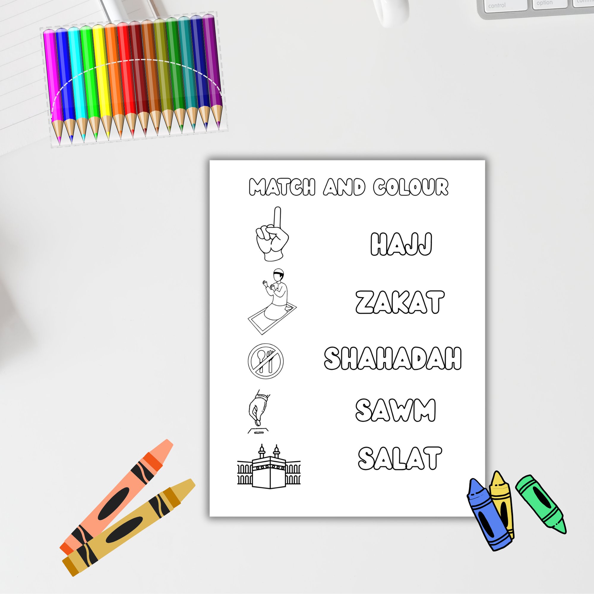 The 5 pillars of Islam Colouring and Activity book was created for my own grandchildren to learn and practise the 5 pillars of Islam. Shahada, Salat, Zakat, Sawm and Hajj. The activity book introduces young Muslim children to the foundation of Islam in a simple and engaging way.